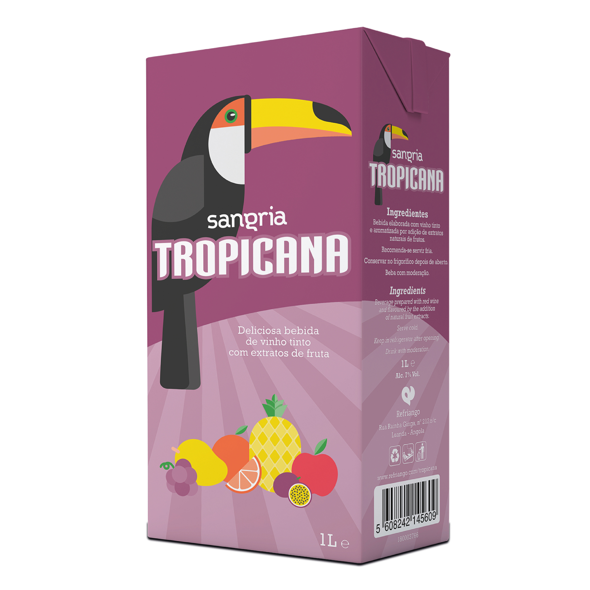 Refreshing spontaneity. Tropicana is the result of the perfect combination of the best red wine and the highest quality fruits. It is a drink that is fun and easygoing. Enjoyed and consumed in parties and meals amongst friends and family. It is drunk chilled in hot weather, and can be enhanced further when mixed with fruit and sparkling water.